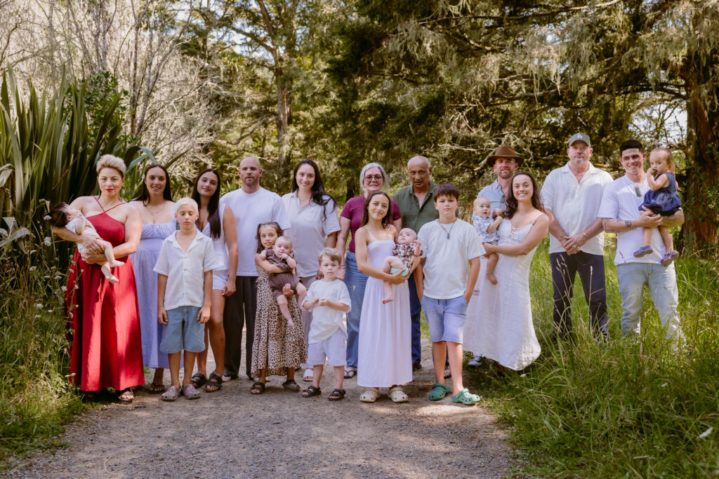 We met on a Saturday afternoon after the adults in the family had been out for lunch (highly recommend a couple of pre-shoot beers for any of the blokes who are not too keen on photos!) We took a short walk from the carpark to a beautiful spot under the trees beside the stream. We started with full group photos, then grandparents with grandchildren, followed by smaller family groupings and mini shoots for each family.